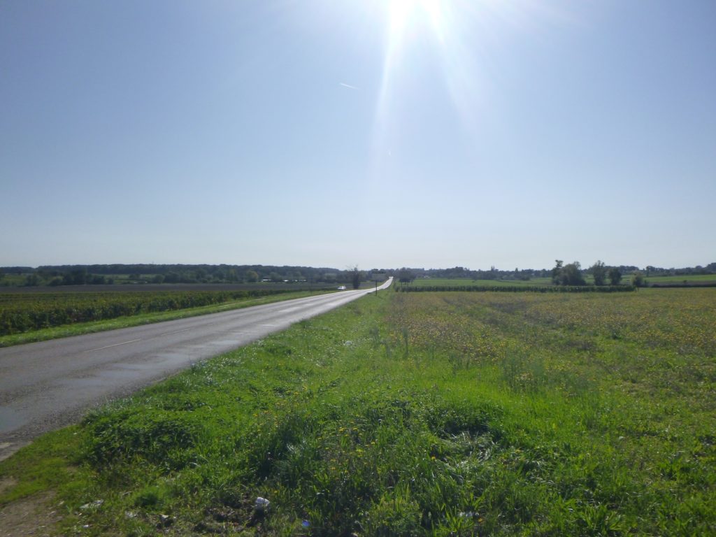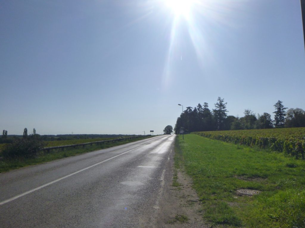 | Lorsque l’on quitte peu à peu la banlieue, la route s’allonge, longeant le vignoble comme un ruban tranquille. La circulation, loin d’être oppressante, s’écoule en douceur, et le marcheur, s’il prend soin de ses pas, peut aisément progresser sur la bande herbeuse qui borde la route, trouvant là un terrain plus souple qu’un simple trottoir. Le silence est parfois brisé par le grondement d’un moteur. |