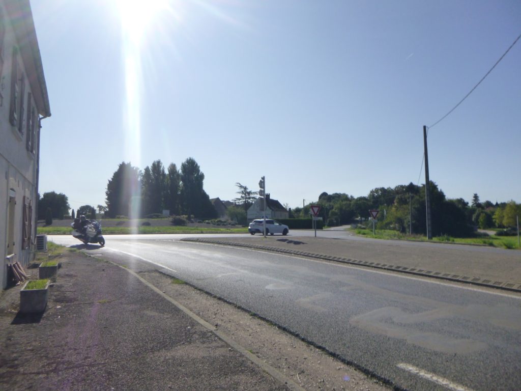 | La départementale, imperturbable, vient bientôt croiser la voie de chemin de fer. |