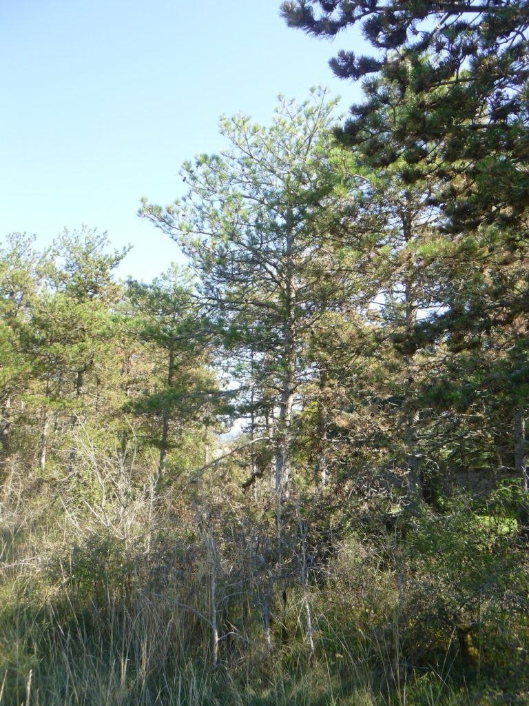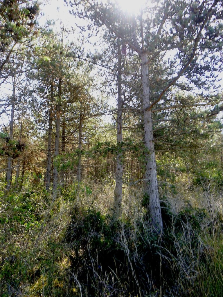 | Désormais, il n’y a plus que des pins maigrelets, dressés comme des silhouettes effilées, le long du chemin. La nature se fait plus sauvage, plus dépouillée, comme si l’on quittait la familiarité des bois feuillus pour entrer dans une terre plus âpre, mais habitée d’une beauté austère. |