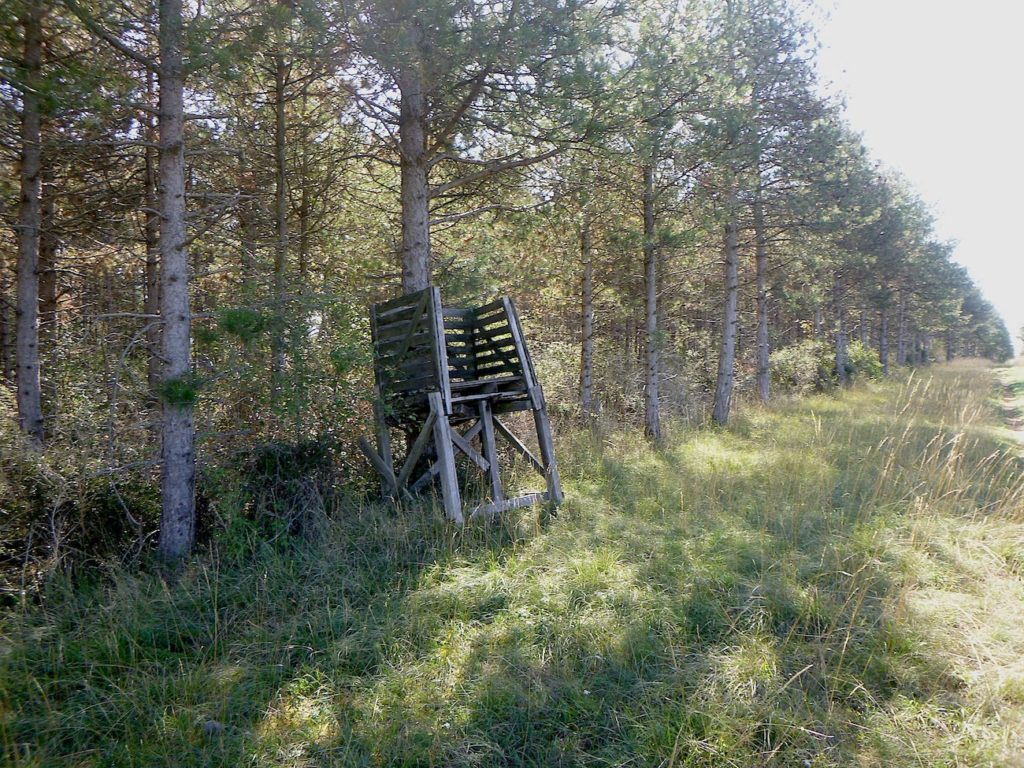 | Le chemin longe alors doucement, dans l’herbe, les rangées de pins qui s’étirent comme des sentinelles végétales. Ici, à l’automne, le pèlerin attentif pourrait surprendre le vol lourd des pigeons ramiers, ces palombes qui traversent le ciel en éclats mouvants, tandis que les chasseurs les guettent depuis leurs palombières. |