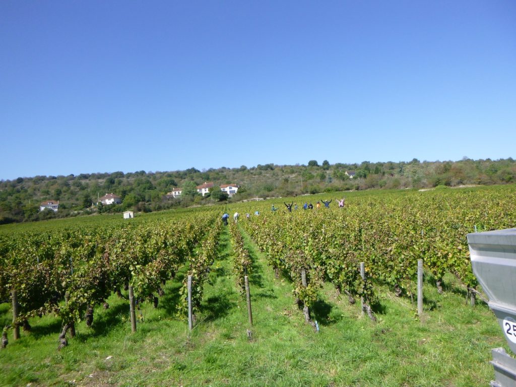 | La vendange bat encore son plein dans le vignoble. Partout, les camionnettes s’alignent le long des routes, prêtes à déposer les vendangeurs dans les rangs serrés et à collecter les lourdes caisses de raisin. Dans le vignoble de Rully, la priorité est donnée au chardonnay blanc, cépage noble qui fait la renommée de ces coteaux. |