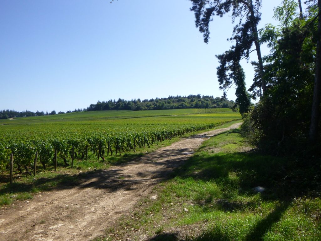 | Le chemin se métamorphose alors en une piste de terre battue, caillouteuse et ferme sous les pas. C’est le Chemin de Branges, qui file droit vers Rully. |
