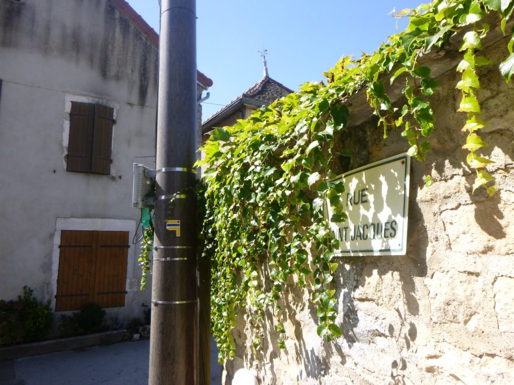 | Au bout de cette rue, le tracé tourne à gauche et rejoint la rue des Croisées. Ici, la coquille, pour une fois correctement orientée, rassure le voyageur : elle brille comme une petite lumière, confirmant la direction choisie. |