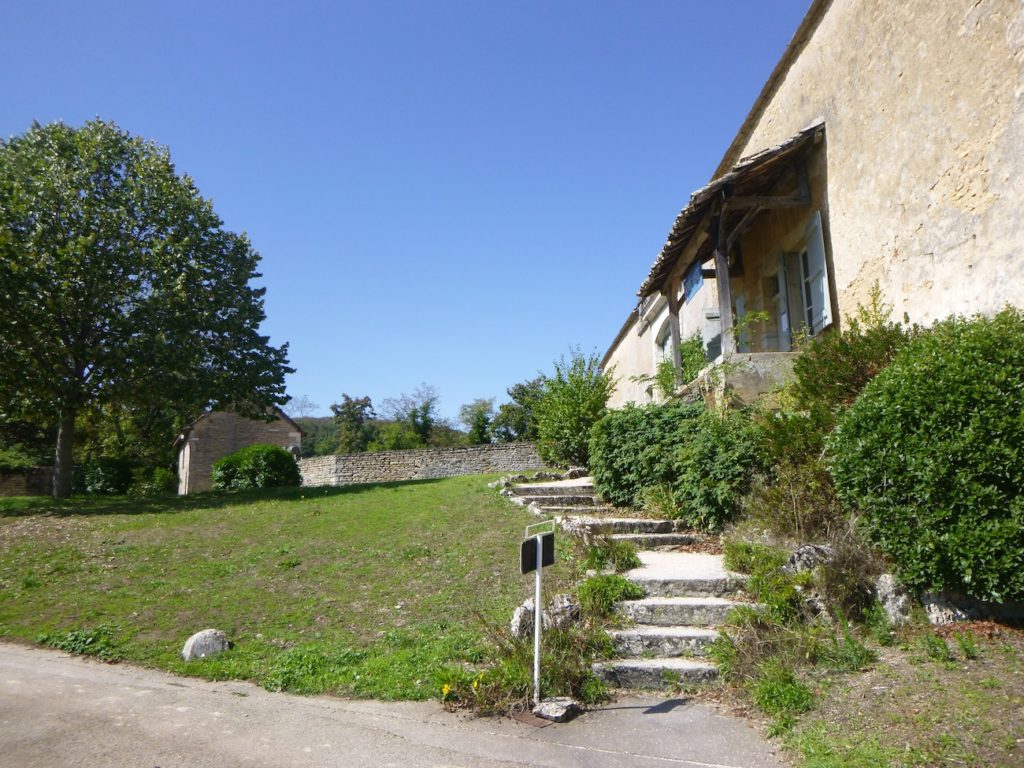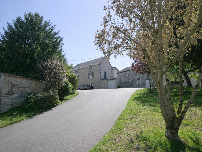 | La route descend alors en pente douce vers les belles maisons de pierre du hameau, solides et patinées par le temps, témoins immobiles de générations de vignerons. |