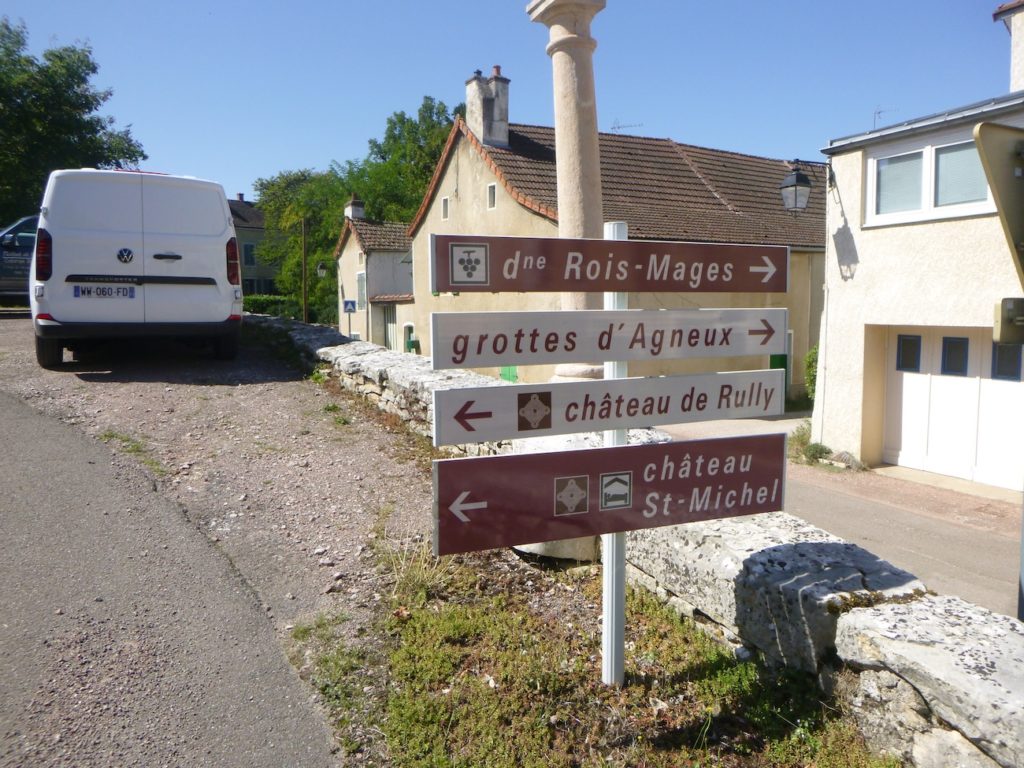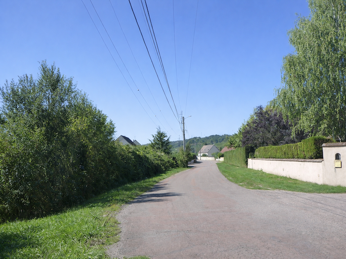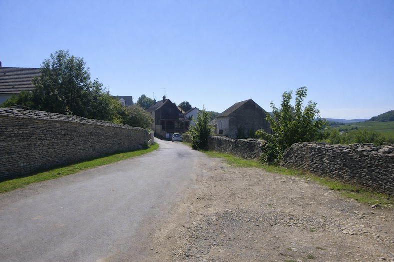 | Trois kilomètres après avoir quitté le centre du bourg, vos pas vous conduisent vers un carrefour, comme une invitation à choisir votre destin de voyageur. Devant vous s’étire encore l’axe menant à Chalon-sur-Saône, avec son appel discret vers une ville plus vaste et animée. Mais il faut bifurquer, quitter la ligne droite de la départementale, pour emprunter celle qui s’infléchit vers Givry. |