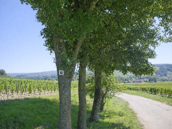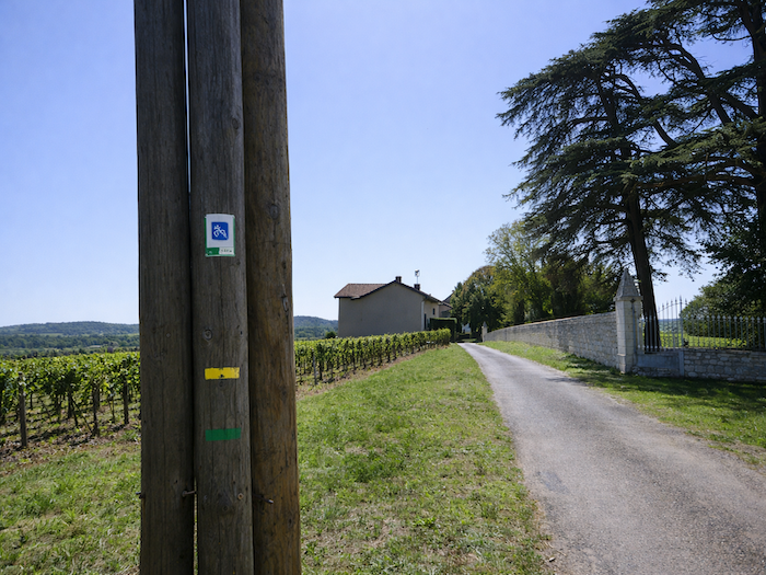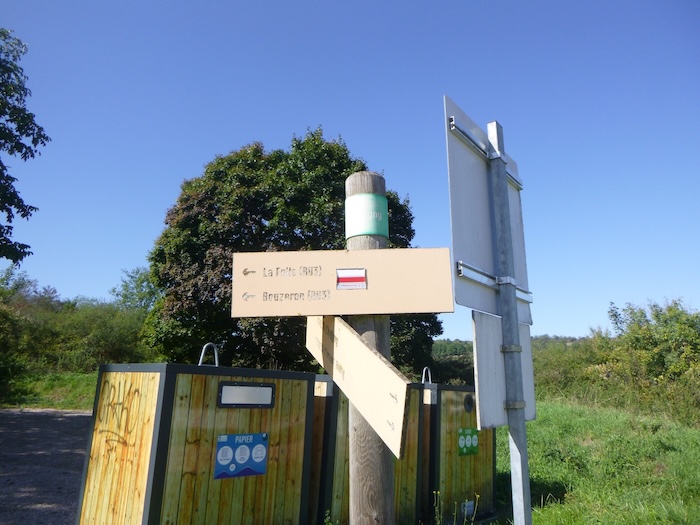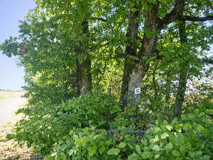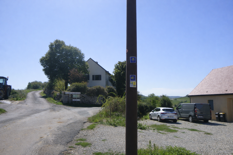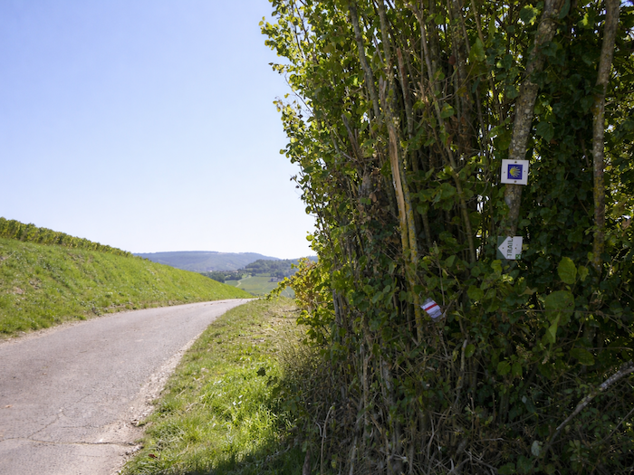 Et pourtant, devant vous se dresse une énigme. C’est plat et vous croyez un instant que le chemin a atteint le plateau des Tartignats. Mais où poursuivre ? À droite ? Tout droit ? Même le petit guide des Amis de Compostelle, parfois précieux, demeure muet face à ce carrefour trompeur. Ici, seuls l’intuition ou la chance guident vos pas. Nous-mêmes avons dû l’aide d’un vigneron bienveillant, qui nous a sorti de l’impasse en nous assurant qu’il fallait continuer tout droit. Vous, désormais, n’aurez plus à hésiter : le chemin du plateau grimpe encore, plus haut, vers la colline.