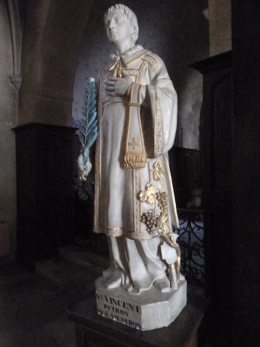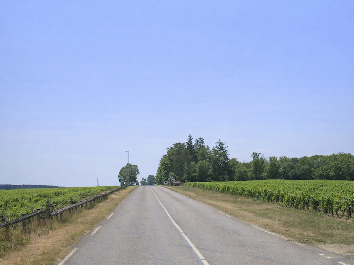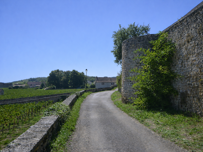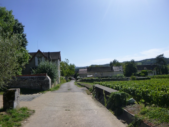 | Les ceps s’étagent de part et d’autre, imperturbables, comme pour ralentir la marche du voyageur happé vers le bourg. |