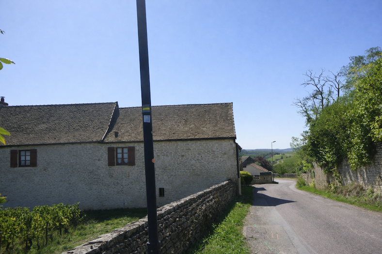 Bien sûr, c’est à droite qu’il faut aller, dans le sillage des marques rouges et blanches du GR. Pourquoi ? Parce que le Chemin de Compostelle épouse ici le même tracé que le GR76, à de rares exceptions près. Le GR76, chemin de grande randonnée, traverse la Bourgogne en révélant ses collines, ses vignes et ses villages, tout en suivant la vallée de la Saône-et-Loire. Il est le compagnon discret et fidèle du pèlerin, un fil rouge qui mène jusqu’à Cluny, capitale spirituelle dont l’écho résonne encore dans les pierres et les mémoires.