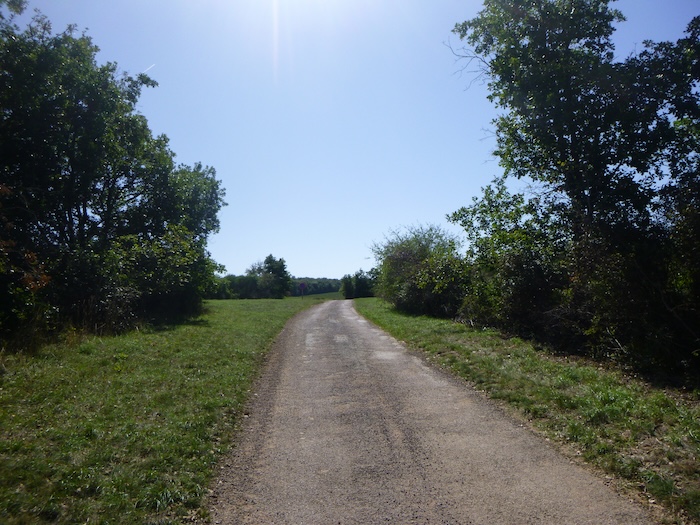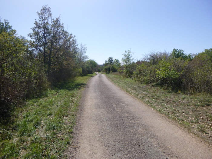 Lorsque vous parviendrez à Mercurey, le parcours ne se contente pas de filer droit : il joue avec les reliefs. Le parcours escalade la colline des Touches, s’entrelace un instant avec le GR7, avant de redescendre vers St Martin-sous-Montaigu. Là, il reprend de l’élan, grimpe de nouveau entre forêts et vignes, parfois avec des pourcentages redoutables, puis se laisse glisser vers Russilly. Après cette épreuve, le chemin s’assagit, se transformant en une succession de montagnes russes plus douces, ondulant jusqu’à Moroges. Mais à ce stade de l’étape, même les Amis de Compostelle laissent percer un conseil de sagesse : pourquoi ne pas quitter le tracé après Russilly pour rejoindre la Voie Verte, près de St Désert, au sud de Givry ? Après tout, si l’objectif n’est pas de se lancer un défi mais de simplifier sa route, pourquoi ne pas rejoindre cette piste cyclable déjà dès Mercurey ? On s’épargne ainsi bien des détours et des grimpettes, et l’on se laisse porter vers Givry, où la Voie Verte passe également. Il faut d’ailleurs le dire sans détour : n’imaginez pas que le Chemin de Compostelle corresponde à un tracé historique et médiéval, patiemment foulé depuis des siècles. Absolument pas, ou si rarement. Les organisateurs de ces itinéraires ont avant tout composé avec l’existant : les sentiers balisés, les grandes randonnées déjà tracées. Ici, c’est le GR7 qui dessine l’épine dorsale de l’itinéraire bourguignon. Si vous choisissez de rester fidèle aux collines, ce sera votre aventure, nettement plus exigeante. Mais alors, redoublez d’attention, car il est si facile de s’égarer dans ces chemins capricieux de Bourgogne ou de Franche-Comté, lorsque nul ne vous tient par la main. Pour notre part, nous n’irons pas à Moroges. A Mercurey, nous couperons par les routes, pour rejoindre Givry, où passe la piste cyclable.