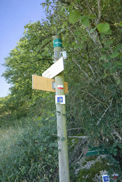 | Ici, la coquille a disparu, remplacée par les seules marques du GR. Ce fait pourrait sembler anodin, mais il ne l’est pas : rares sont ceux qui savent que le Chemin de Compostelle et le GR se confondent presque totalement en ces lieux. Même le petit guide des Amis de Compostelle omet de le préciser. C’est là l’un de ces mystères de la marche, où l’on apprend que suivre un signe, c’est déjà faire confiance à une histoire plus vaste que soi. |