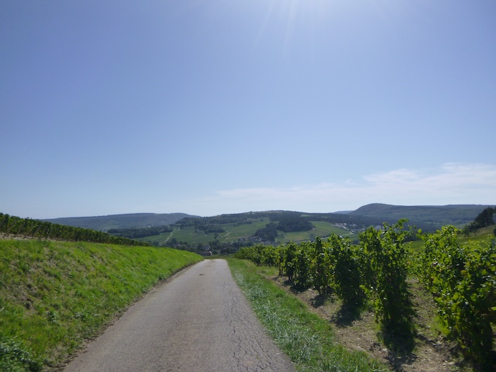 | La pente est soutenue, parfois proche de 15 %, et plonge au cœur du vignoble. |