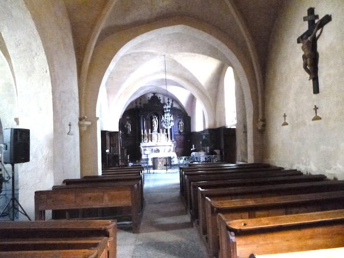 | Heureusement, l’ascension, aussi sévère soit-elle, demeure brève. La rue s’adoucit ensuite, s’élevant avec une pente plus clémente vers l’église St Laurent. Ce sanctuaire, dominant le village, date du XIIIe siècle. Ses pierres, patinées par le temps, témoignent de nombreuses transformations au fil des âges, reflets de la patience et de la foi des hommes qui l’ont entretenue. |