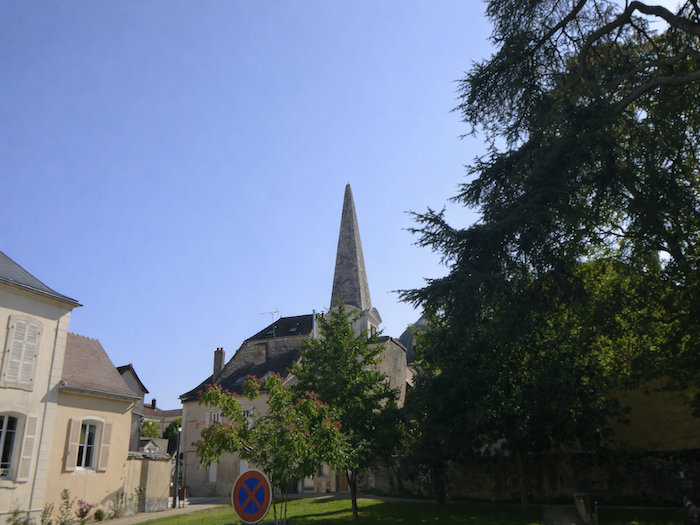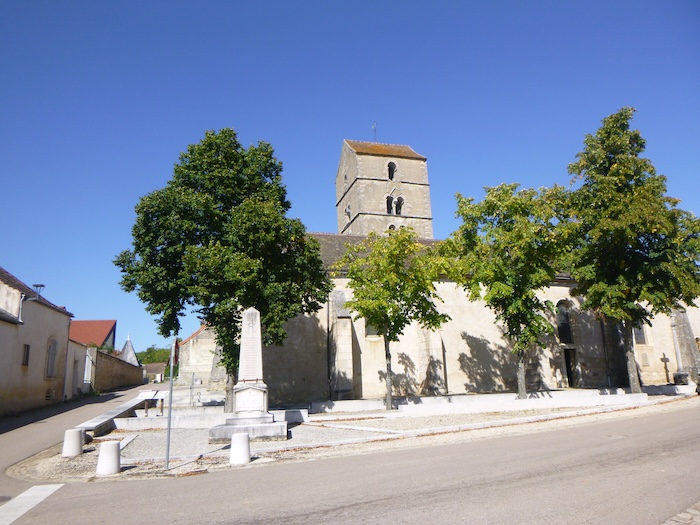 | À Rully, l’église, fière et immuable, domine le village. Le Chemin de Branges se rapproche à grands pas du village. |