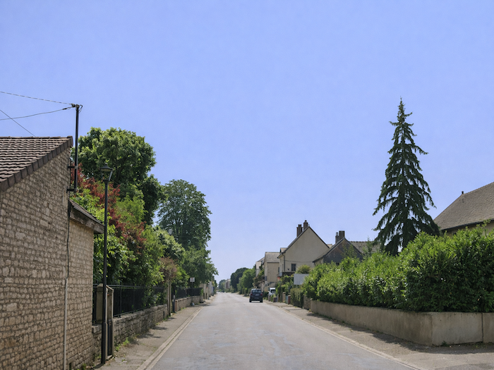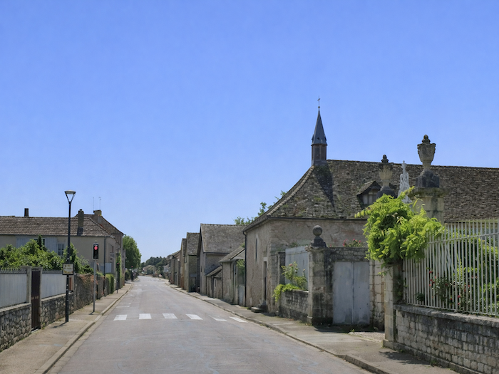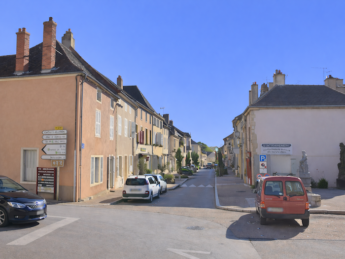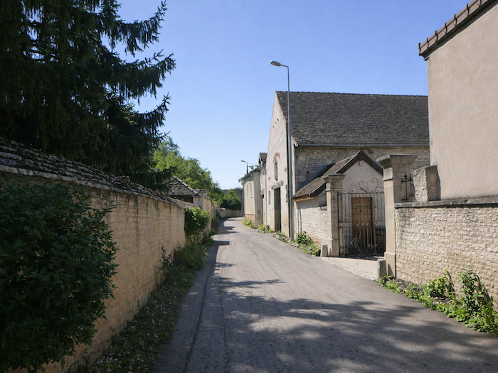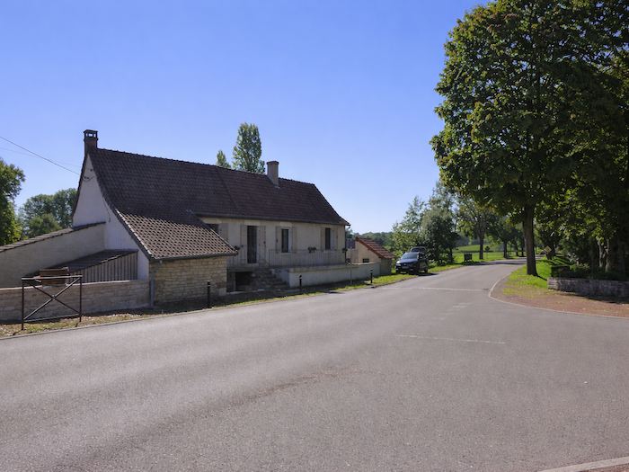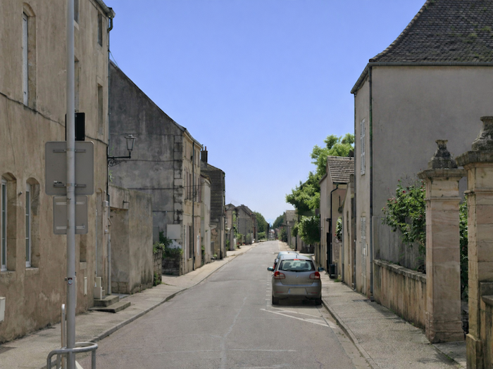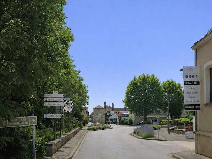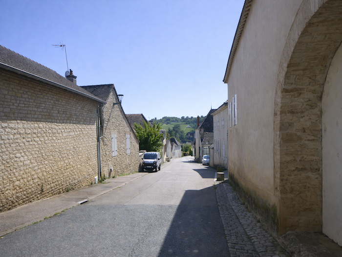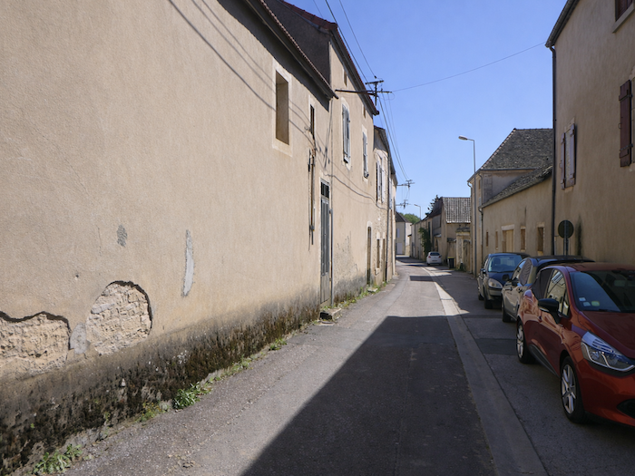 | Il s’entrelace ensuite dans les ruelles du village, serpentant jusqu’à la Grande Rue. Les façades de pierre, les volets clos, composent un décor à la fois humble et digne, fidèle à l’âme bourguignonne. |