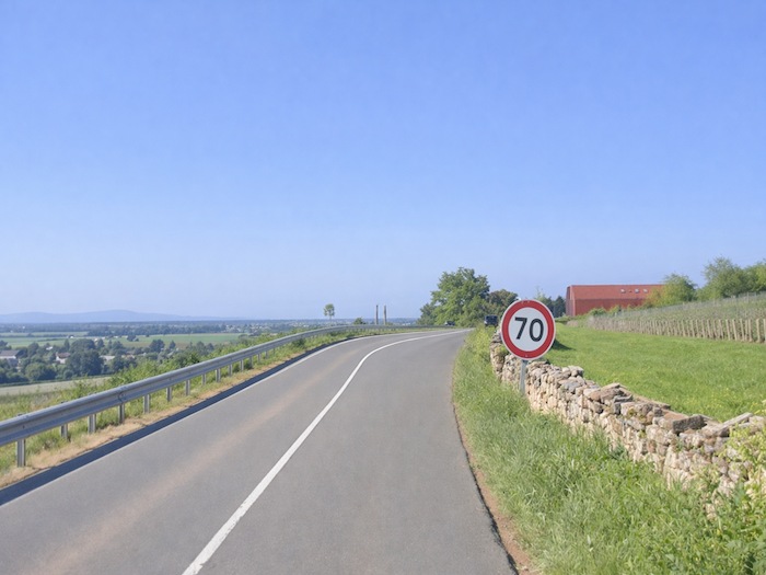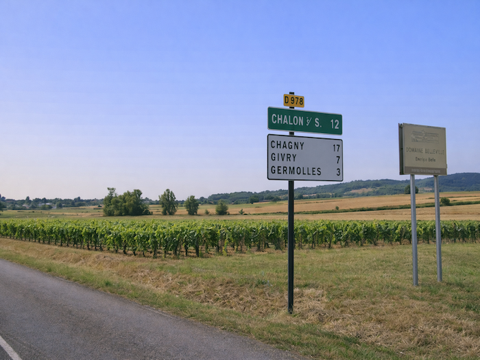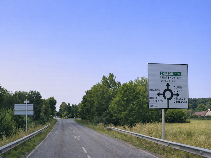 | Sur cette longue et monotone plaine, où vous ne serez que rarement bousculé par le trafic, on annonce Châlons-sur-Saône à 12 km et Givry à 7 km. |