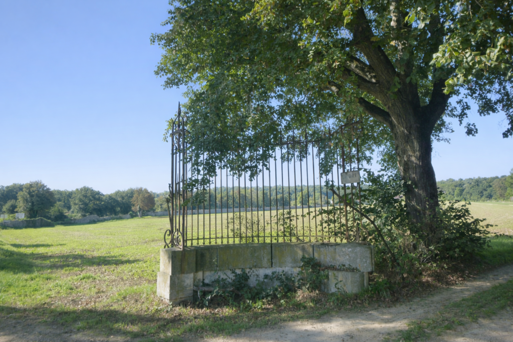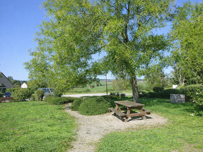 | Au carrefour, la route s’infléchit doucement et conduit vers Germolles. C’est un passage presque inattendu, car soudain s’ouvre devant le voyageur un parc de verdure, vaste clairière ombragée qui semble inviter à la halte. Là, au détour des arbres, une aire de pique-nique accueille les promeneurs, comme une respiration accordée au rythme de la marche. |