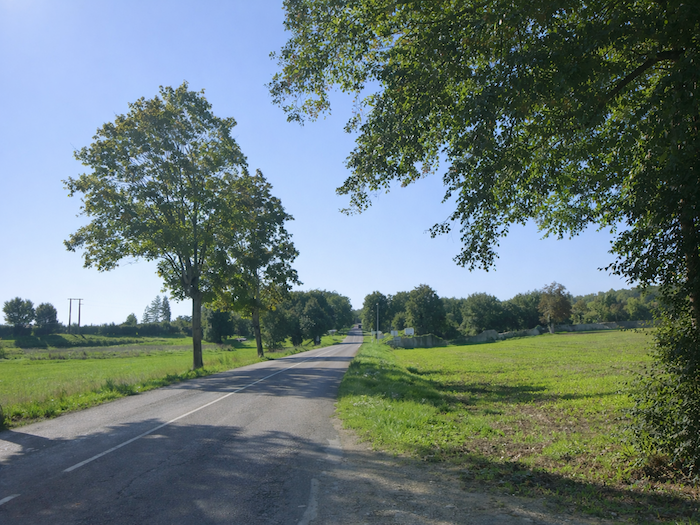 | La départementale, imperturbable, vient bientôt croiser la voie de chemin de fer. |