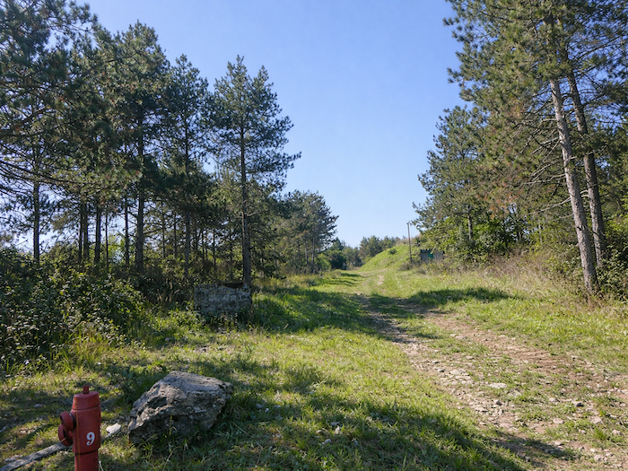 | Une petite route goudronnée quitte le vignoble pour s’élever patiemment, presque avec douceur, le long des buissons sauvages qui bordent son tracé. La montée est régulière, jamais trop exigeante, mais le paysage, à ce stade, se fait plus austère, dépouillé, presque sans charme. Le marcheur y avance d’un pas plus mécanique que rêveur. |