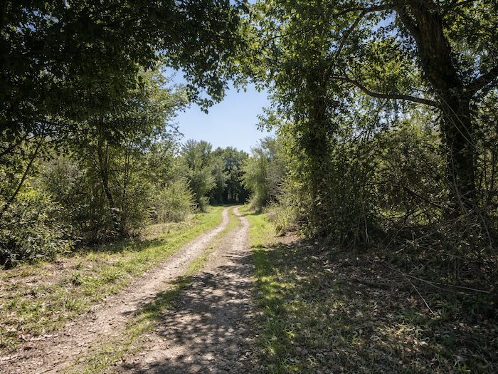 | Les chênes dominent ici, majestueux et robustes, comme des gardiens immobiles. Autour d’eux, les châtaigniers dressent leurs ramures, les érables champêtres ajoutent leurs éclats plus délicats, et une profusion de buissons borde le chemin, dessinant une haie vivante. |