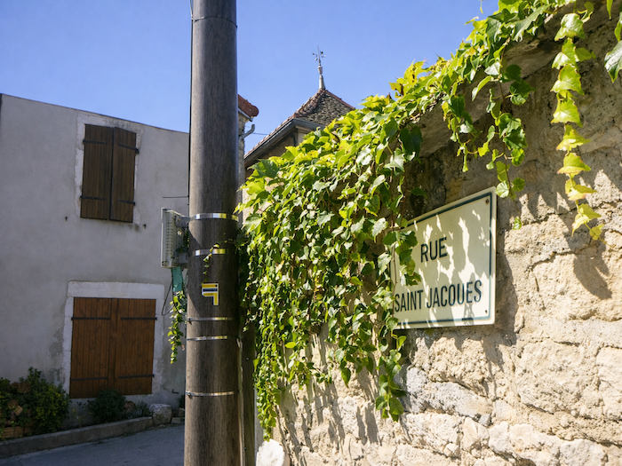 | Le parcours y pénètre par la rue de Saint-Jacques, comme un clin d’œil au pèlerinage séculaire auquel il se rattache. Les demeures sont en grande partie recouvertes de crépi ocre, qui donne une douce unité au village. |