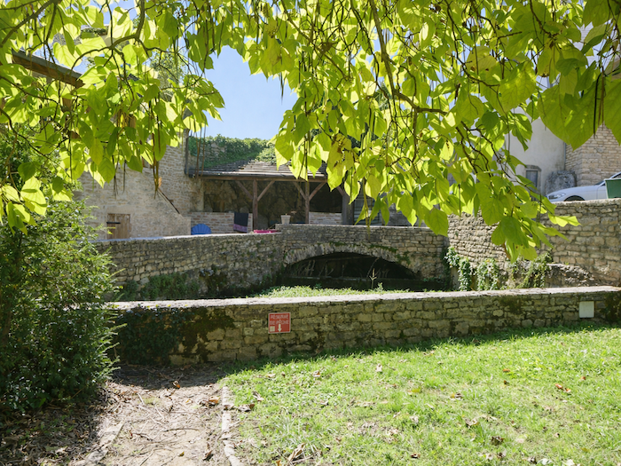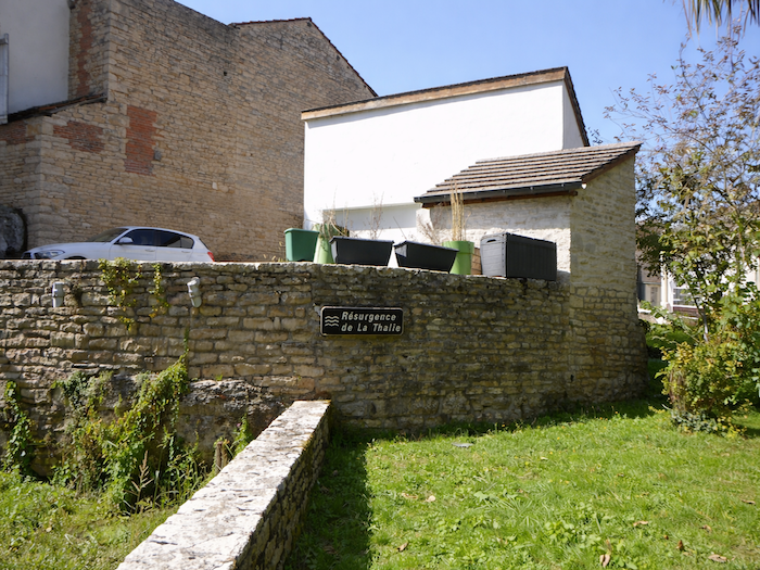 | Ici, le parcours se détourne vers la rue des Buis, où se cache une belle résurgence de la Thalie. Ce petit ruisselet, discret et limpide, jaillit des pierres taillées couvertes de mousse, comme une confidence murmurée par la terre. |