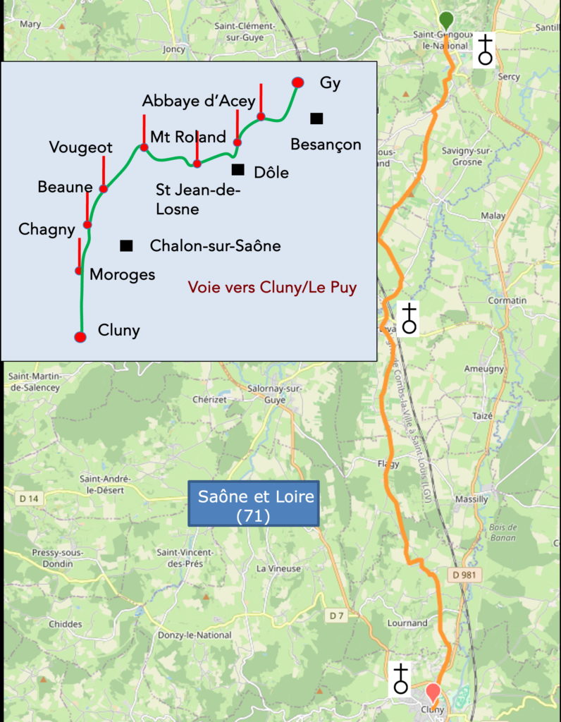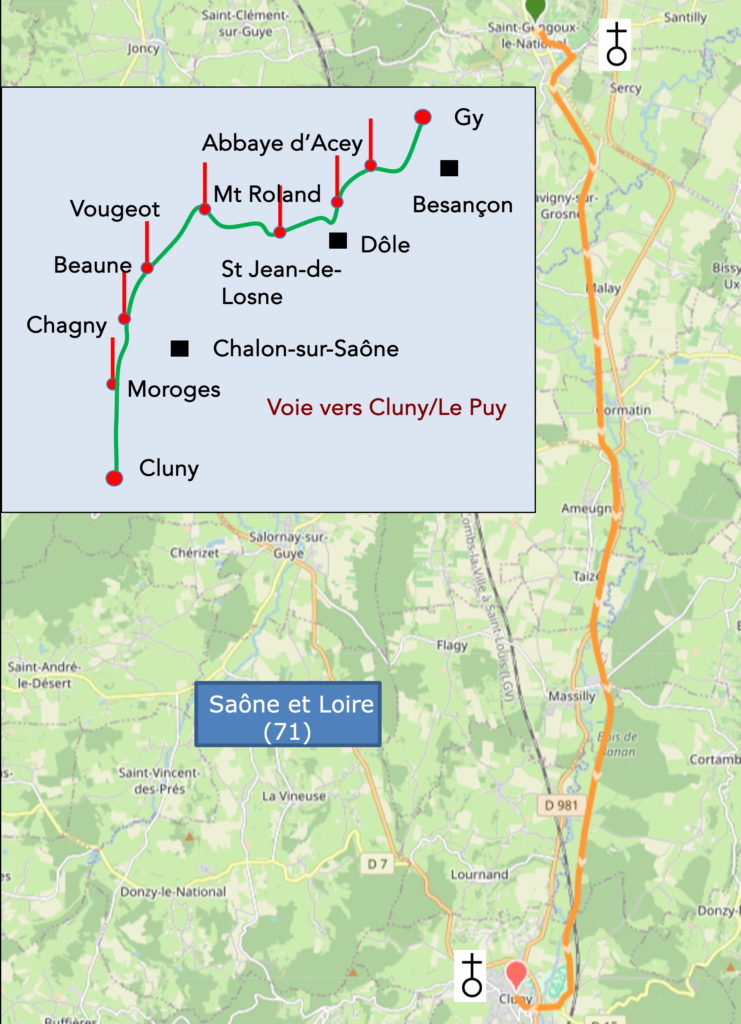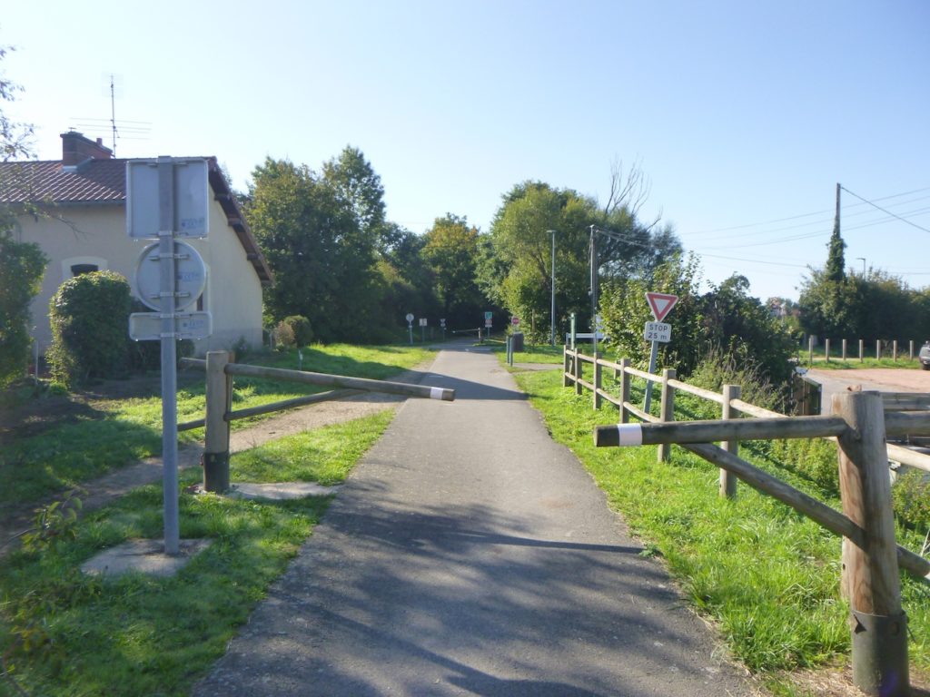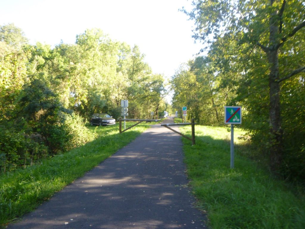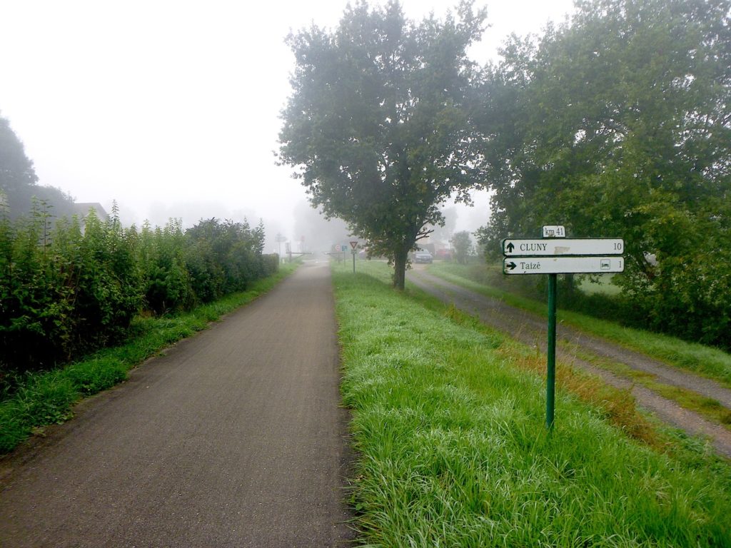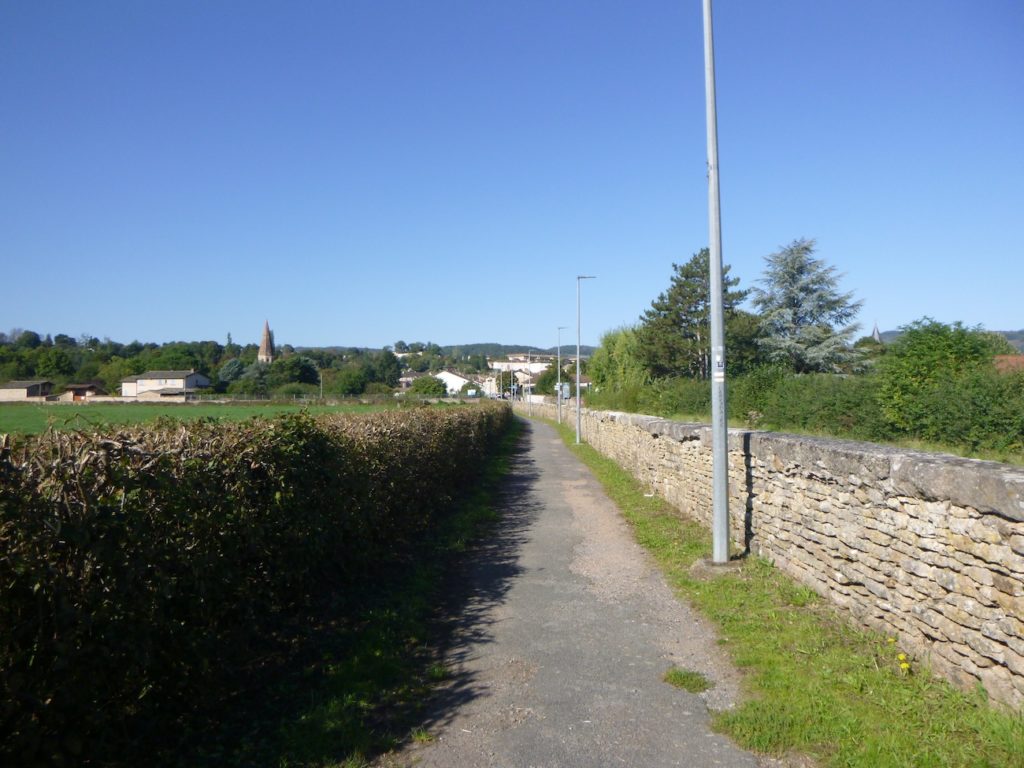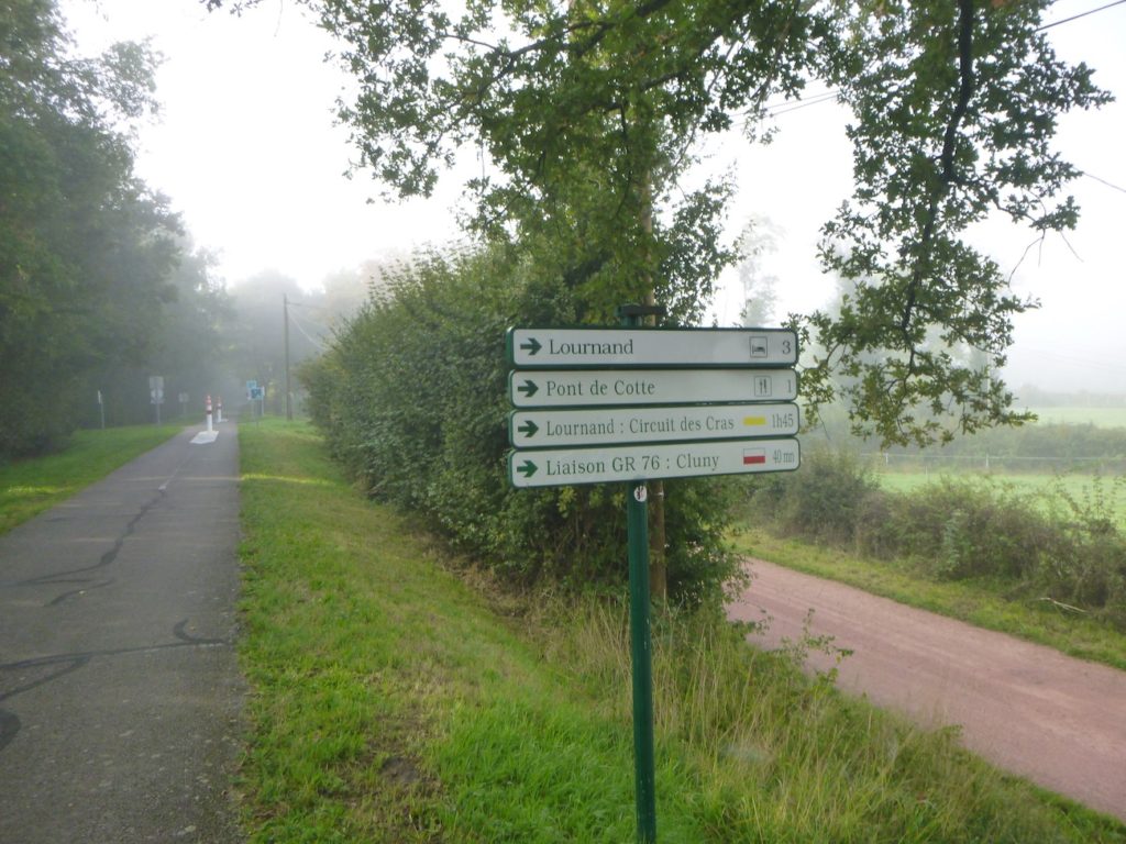 Sur un tel parcours, qui n’est plus le Chemin de Compostelle, mais une voie alternative, il n’y a évidemment pas de coquille. Mais, comme la Voie Verte est continue d’une ville à l’autre, aucun fléchage n’est nécessaire. Bien sûr, certains pèlerins préféreront suivre le Chemin de Compostelle, arrivé la veille à St Gengoux-le-National. Pour ces derniers, voici le parcours.