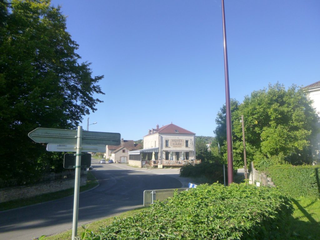 Depuis le bourg, il vous faudra redescendre près d’un kilomètre pour retrouver la piste cyclable. Tout en bas de St Gengoux-le-National, près de la voie ferrée disparue, se dresse l’Hôtel de la Gare, comme un témoin immobile d’un temps où les trains animaient la vallée. Aujourd’hui, c’est la piste cyclable qui en prolonge la mémoire, glissant discrètement à deux pas de ses murs.