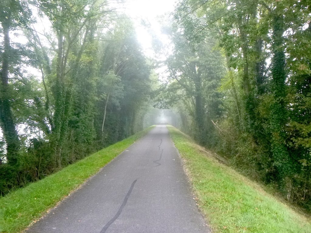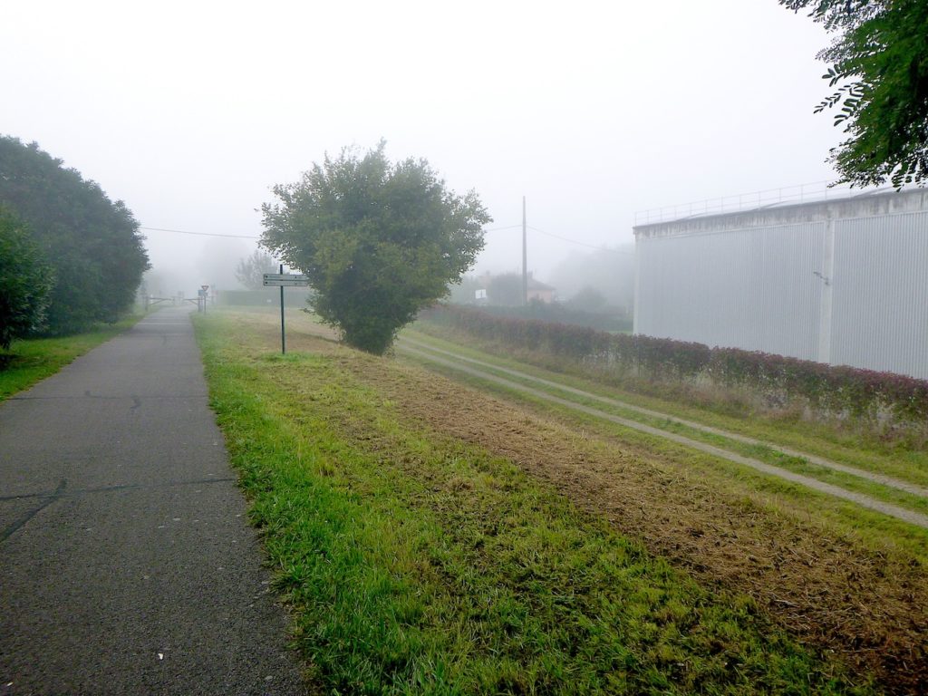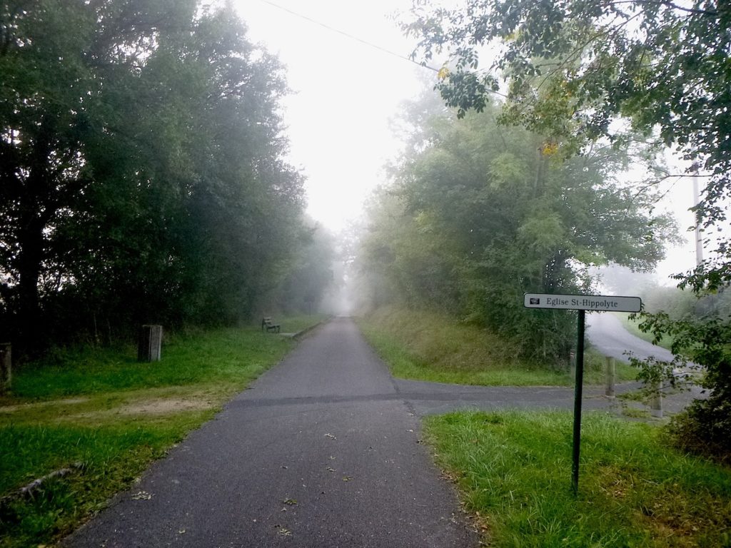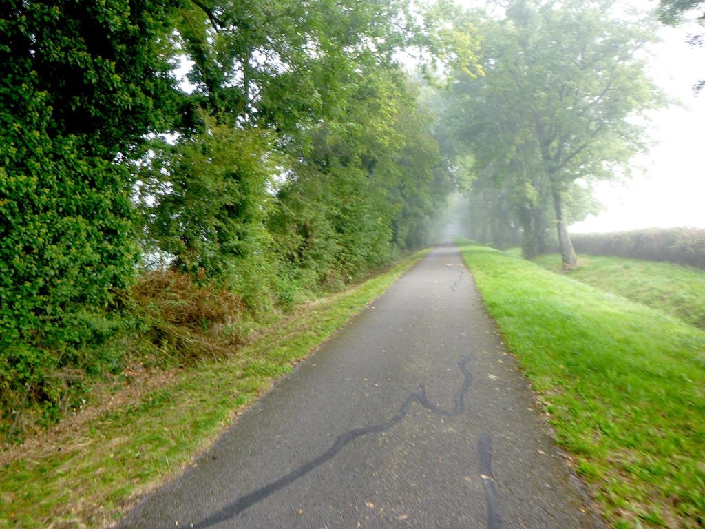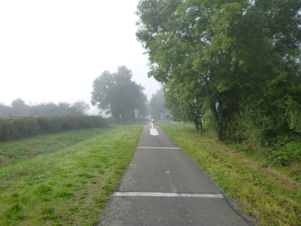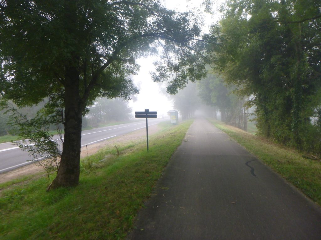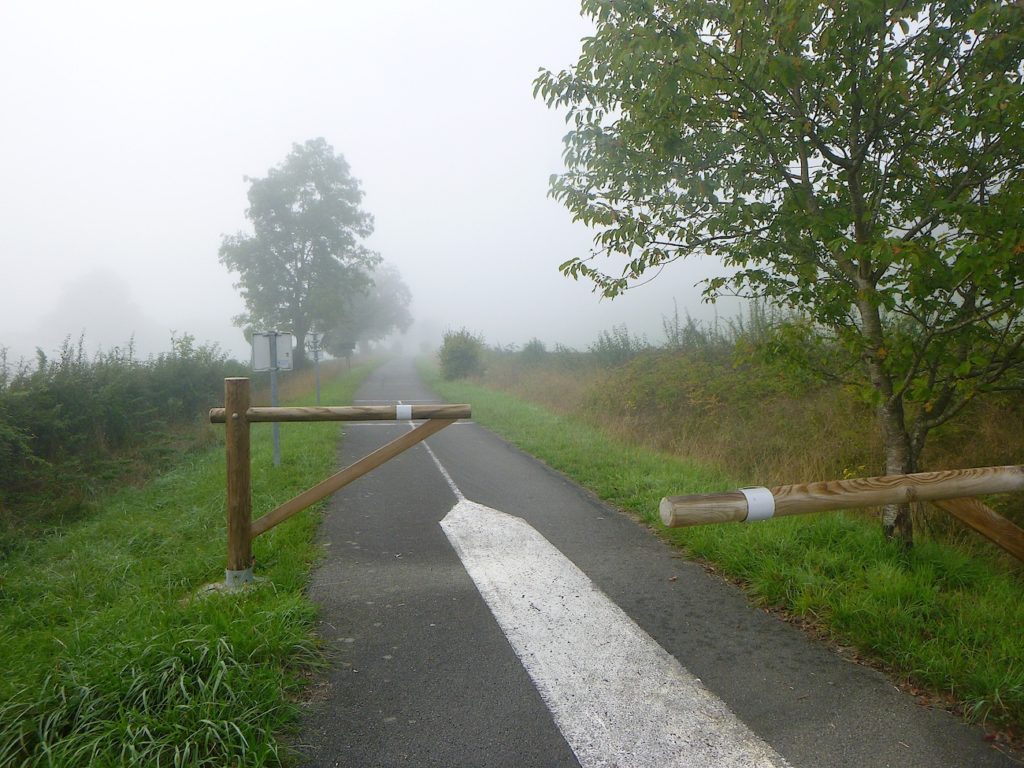 Et la voie verte, ce jour perdue dans le brouillard, poursuit sa route avec obstination : droite comme une pensée fixe, lancinante comme une mélodie qu’on ne parvient pas à chasser, intransigeante comme une règle dont rien ne peut fléchir l’autorité. Elle impose son rythme au marcheur, sans concession.