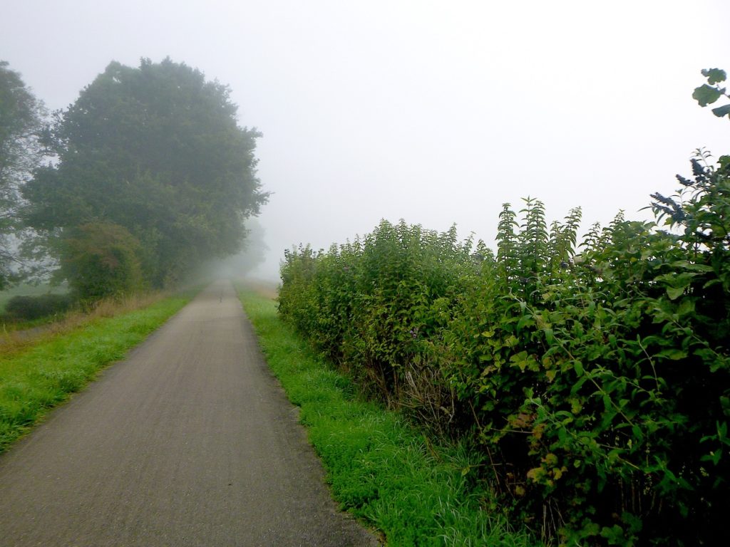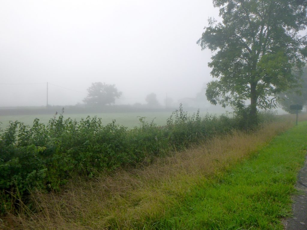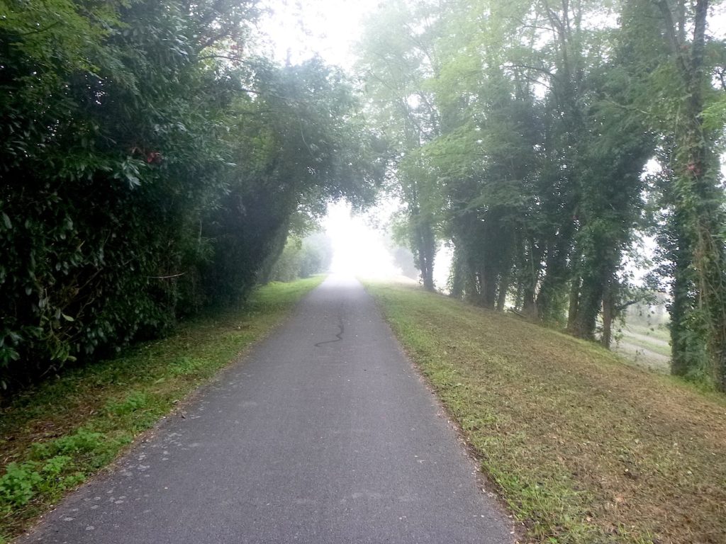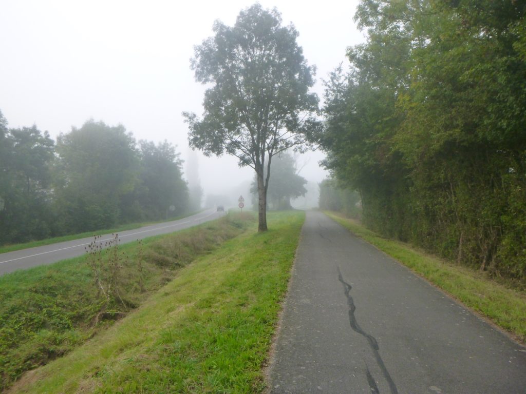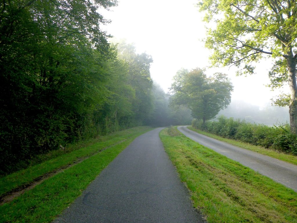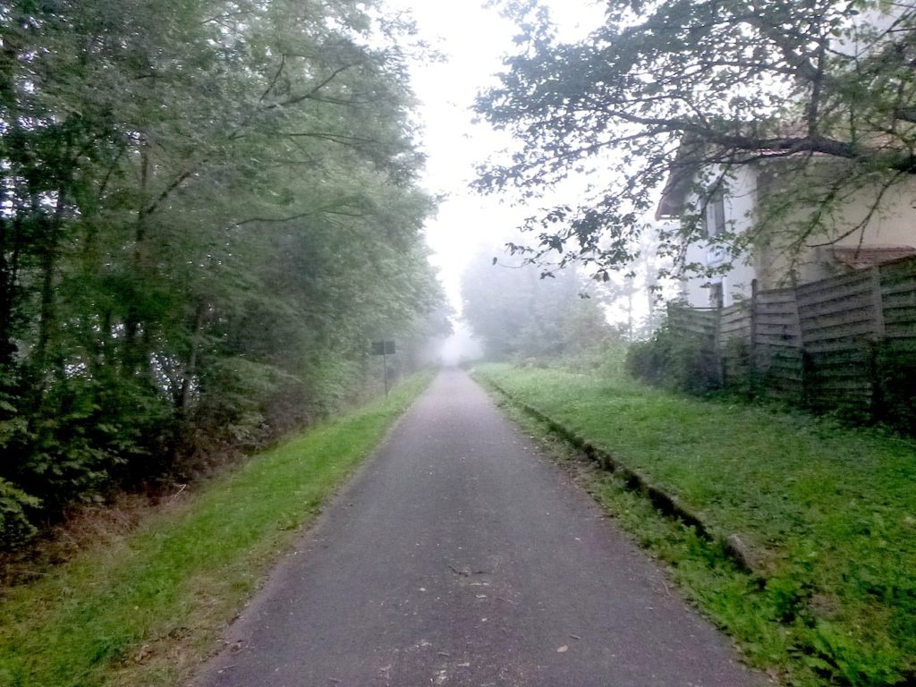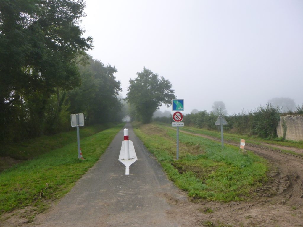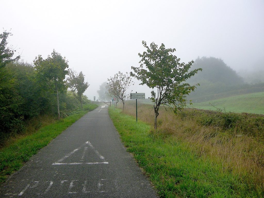 Et la voie verte, ce jour perdue dans le brouillard, poursuit sa route avec obstination : droite comme une pensée fixe, lancinante comme une mélodie qu’on ne parvient pas à chasser, intransigeante comme une règle dont rien ne peut fléchir l’autorité. Elle impose son rythme au marcheur, sans concession.