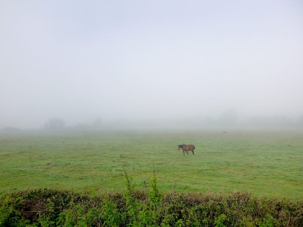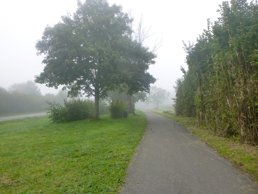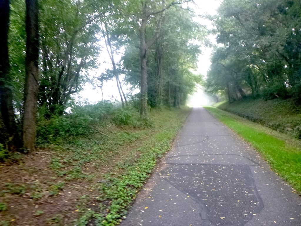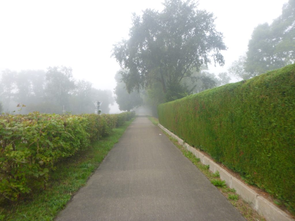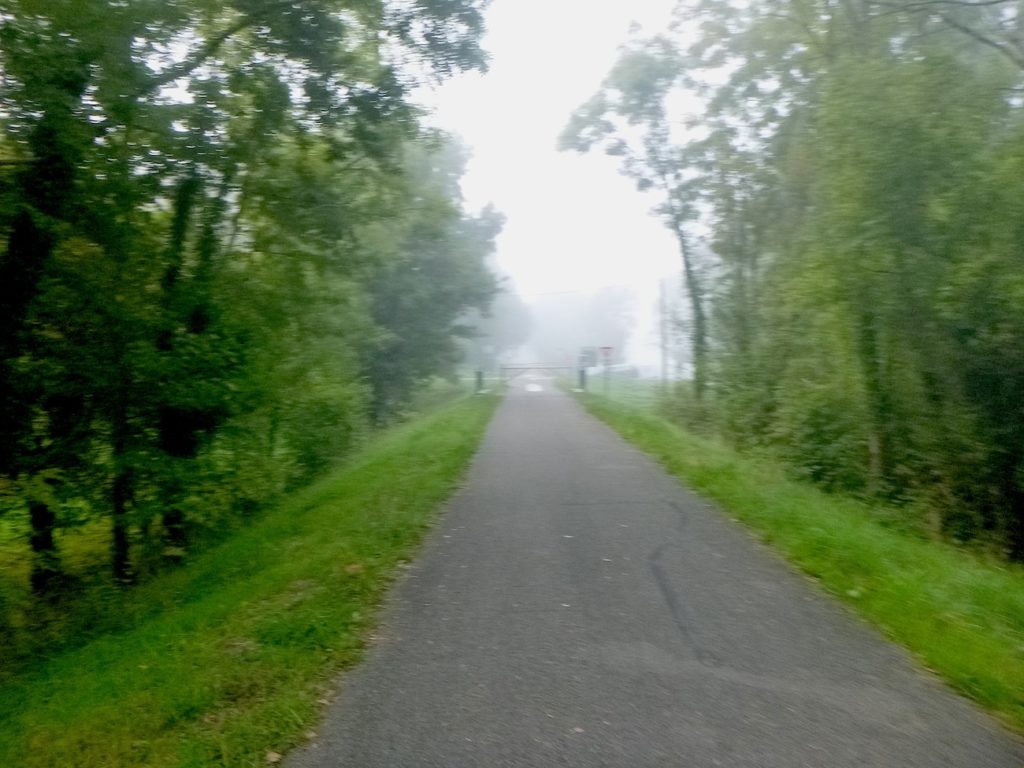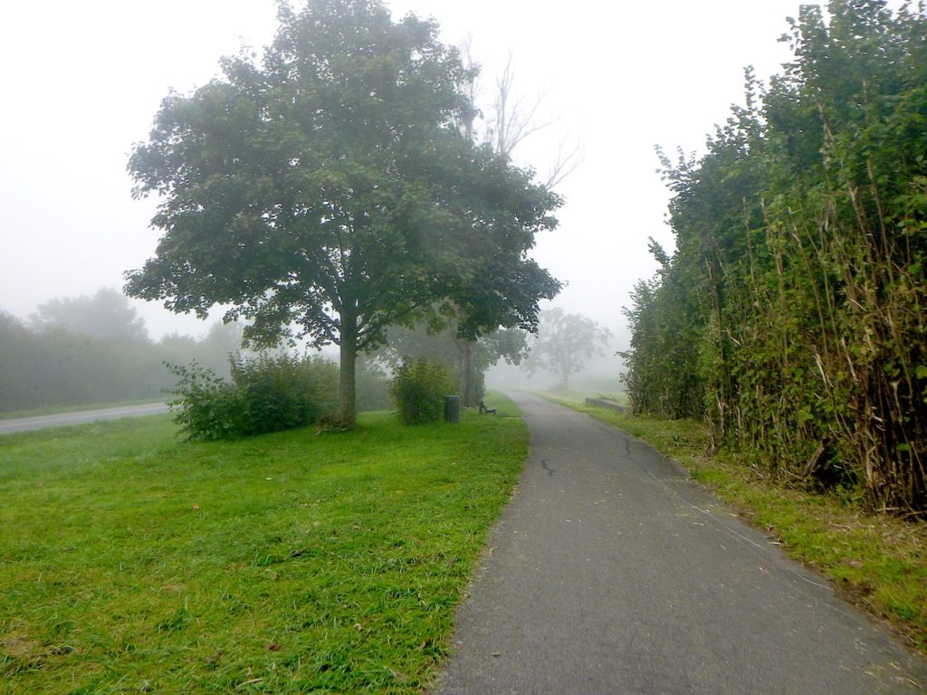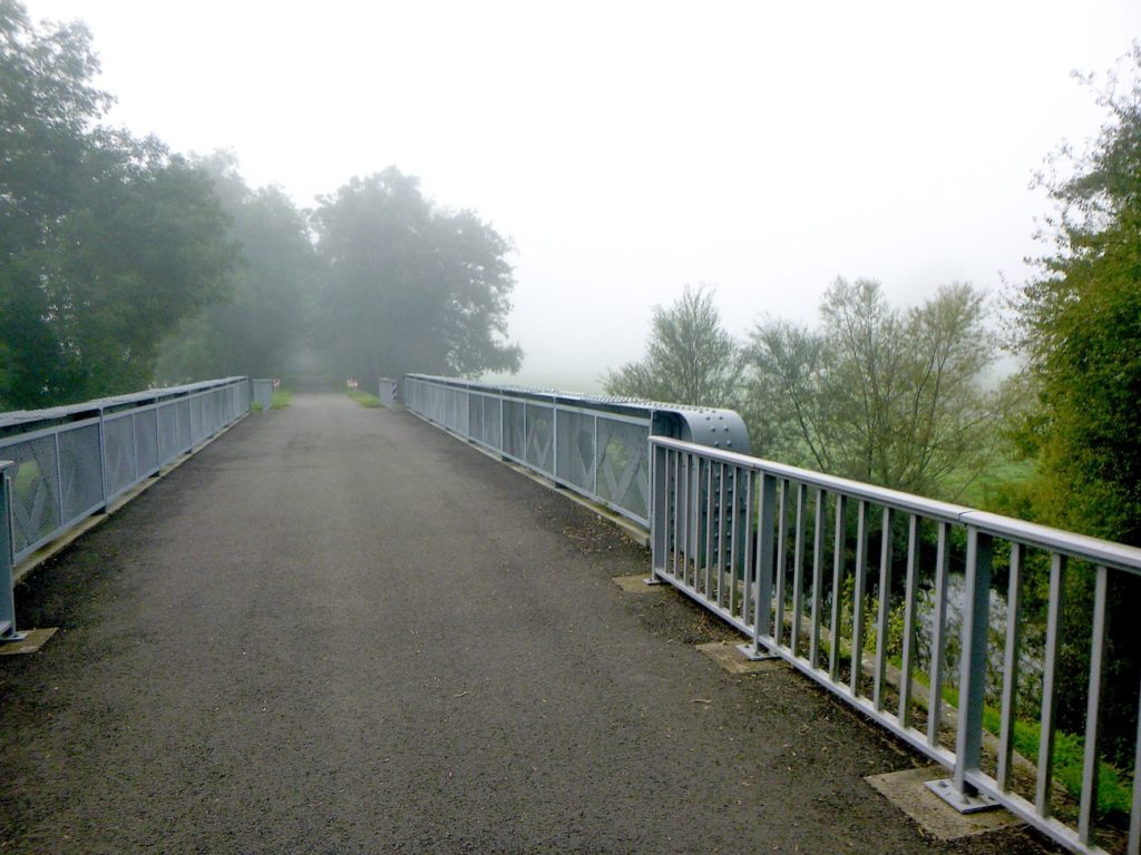 Et la voie verte, ce jour perdue dans le brouillard, poursuit sa route avec obstination : droite comme une pensée fixe, lancinante comme une mélodie qu’on ne parvient pas à chasser, intransigeante comme une règle dont rien ne peut fléchir l’autorité. Elle impose son rythme au marcheur, sans concession.