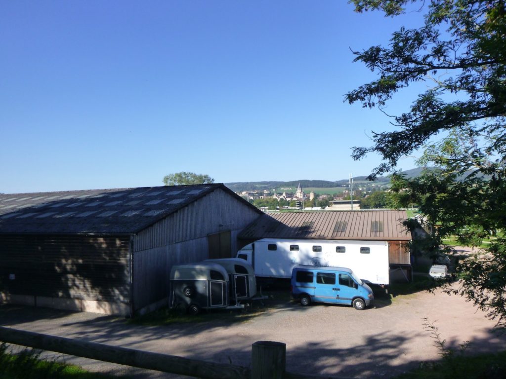 Alors, derrière de simples hangars agricoles, surgit une vision inattendue : des alignements entiers de vans à chevaux, comme une armée silencieuse prête à prendre la route. Ces silhouettes blanches et métalliques dessinent un décor insolite, presque théâtral, rappelant la place importante de l’équitation dans cette terre de Cluny.