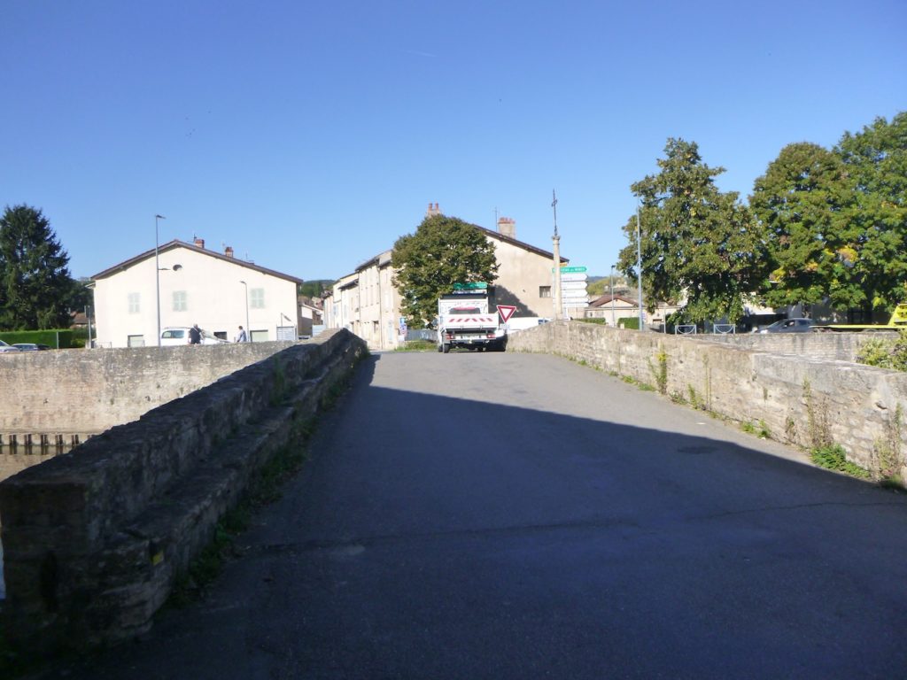 La route traverse alors une fois de plus la Grosne, et le paysage s’ouvre soudain. La rivière se déploie dans la lumière, et au-delà s’offre la cité de Cluny, avec ses toits, ses clochers, ses souvenirs médiévaux. L’eau devient miroir de pierre et d’histoire.