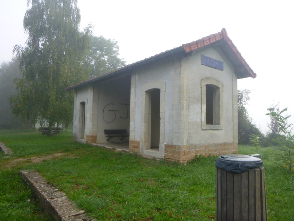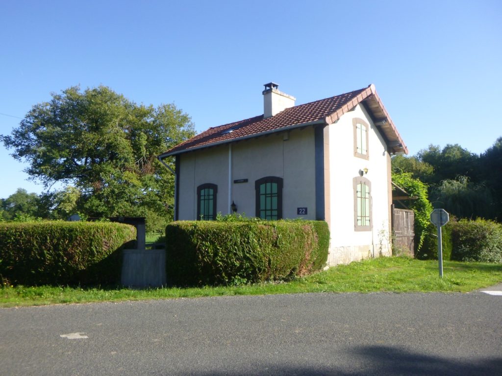 Elle arrive bientôt au lieu-dit du Papyllon, où la gare, aujourd’hui muette, se dresse comme une cicatrice du temps passé. Délaissée, désaffectée, elle demeure pourtant témoin d’une époque où le train battait la campagne. Là, la piste franchit une petite départementale, discrète, au bord de laquelle un atelier de céramique se tient, presque comme une halte artistique au milieu de cette monotonie.