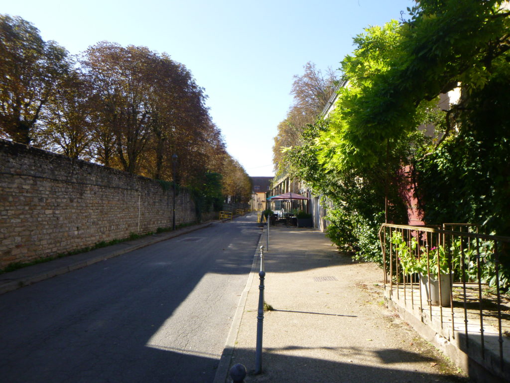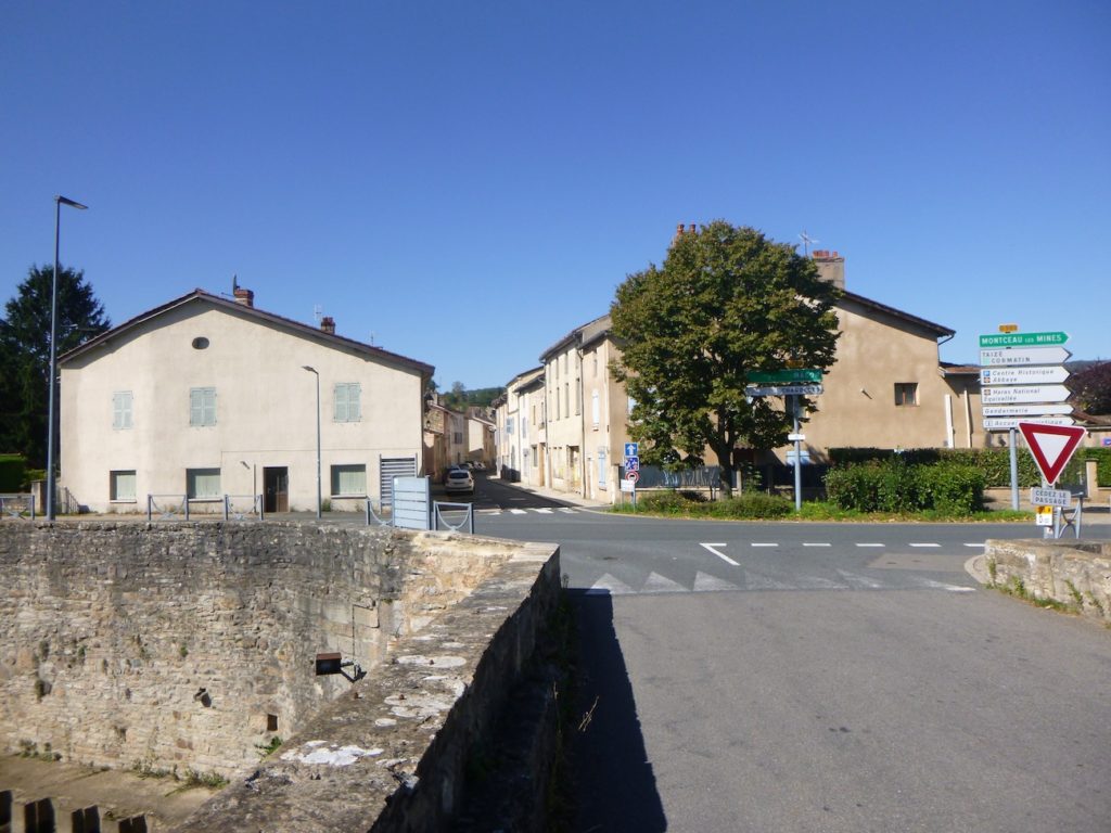 Ici, vous rejoignez le chemin officiel de Compostelle, celui qui descend depuis St Gengoux-le-National. Vous retrouvez alors la coquille familière, signe universel des pèlerins, compagnon de route millénaire. Le chemin emprunte la rue des Brouillards, comme s’il voulait, une fois encore, traverser un voile de mystère avant d’atteindre les portes de la cité.
