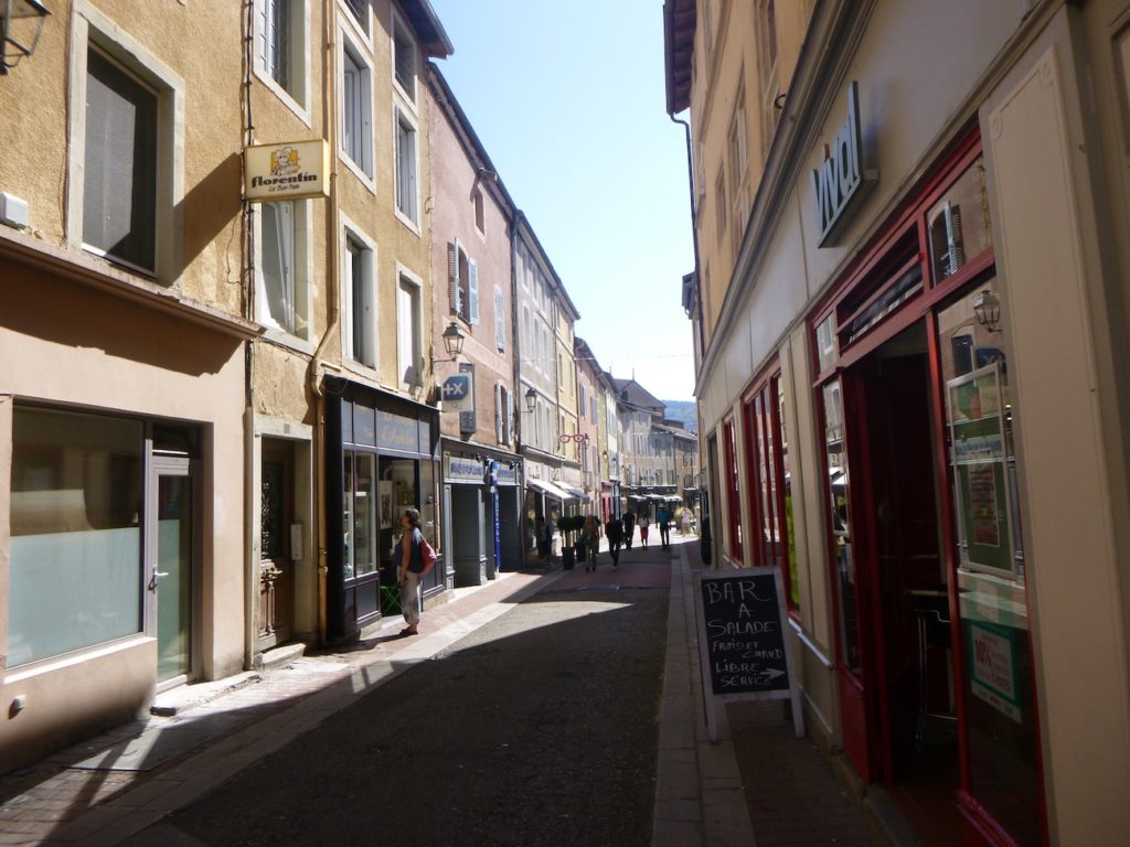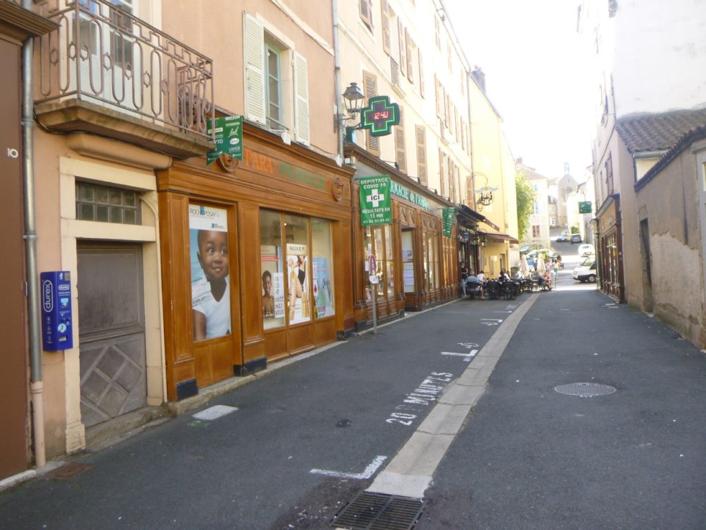 Ici, le voyageur a le choix : contourner le centre-ville et s’égarer du côté des parcs à chevaux, ou bien continuer tout droit vers la vie commerçante. La Rue de la Levée, la rue Lamartine et la rue Mercière conduisent alors jusqu’au cœur animé de Cluny. Passons par là. tout droit.