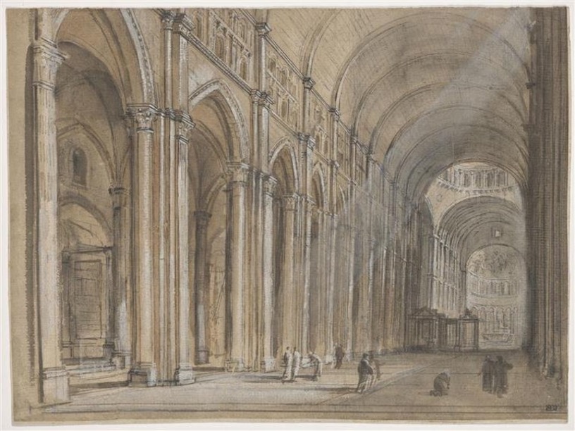 Aujourd’hui, presque tout a disparu de cette nef grandiose, engloutie par les destructions qui suivirent la Révolution. Mais il suffit d’un fragment de mur, d’une fondation qui affleure, pour que l’imagination recompose la splendeur perdue. Ces pierres éparses deviennent alors des vestiges habités : elles portent encore, comme une mémoire muette, l’ombre de la nef immense. Voici deux images : l’une, extraite des dossiers du Louvre, rend compte de ce que l’histoire nous a transmis ; l’autre, confiée à l’imagination de ChatGPT, tente d’approcher, en rêve, ce que l’œil ne verra plus jamais.