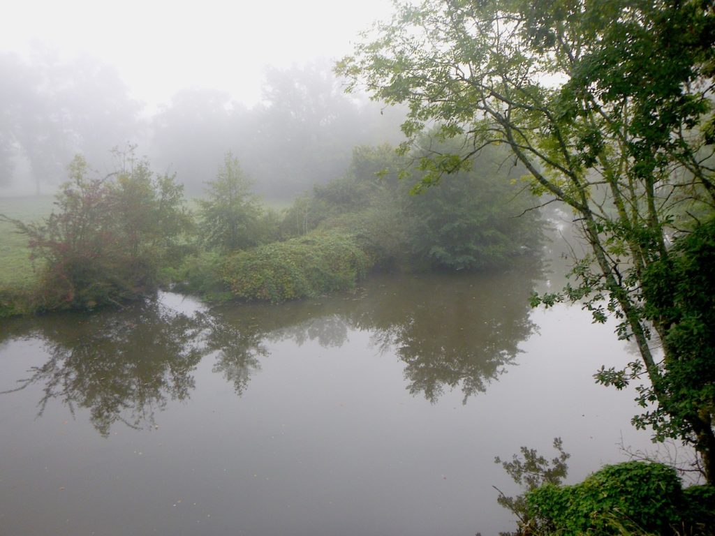 Évidemment, sous le voile du brouillard comme sous la lumière éclatante du soleil, cette rivière se transforme. Elle se fait présence spectrale, mystérieuse et grise lorsque les brumes l’enveloppent ; elle devient éclat, miroir éclaboussé de clarté, lorsque le soleil la révèle. Elle est à la fois la même et une autre, tantôt voix assourdie, tantôt chant éclatant.
